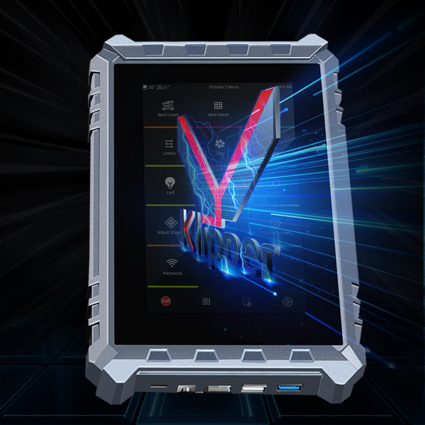 1024*600 resolution offers high definition and rich colors. The hotend equips with LED lights for monitoring prints even in low-light conditions.Native klipper UI screen provides you with a better printing experience